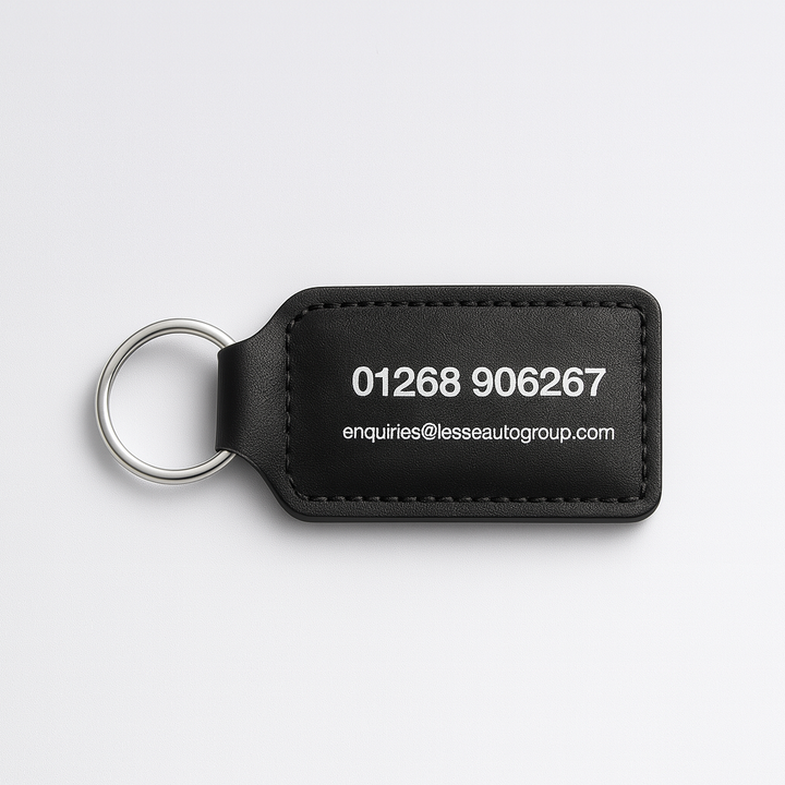Classic bonded leatherette key fob fitted with a split ring and the option for single or double sided print. Perfect for those looking for a professional look.